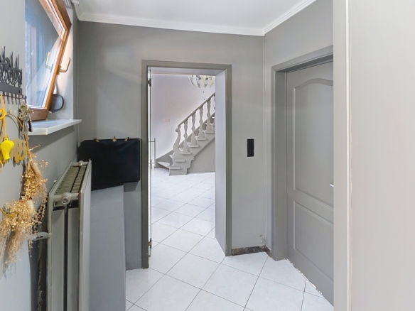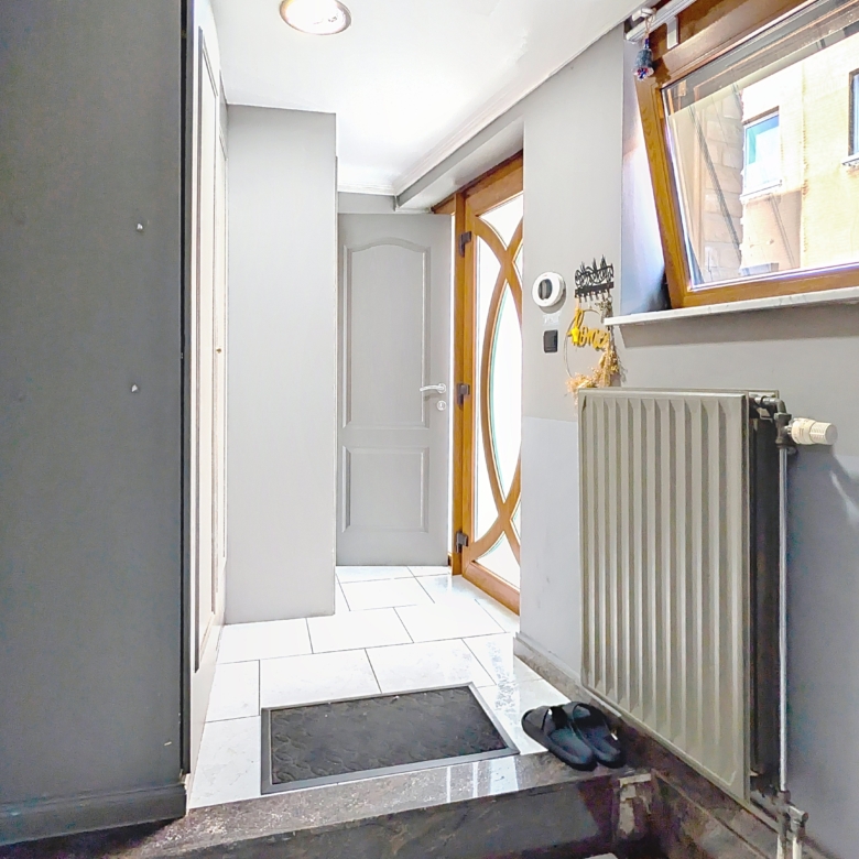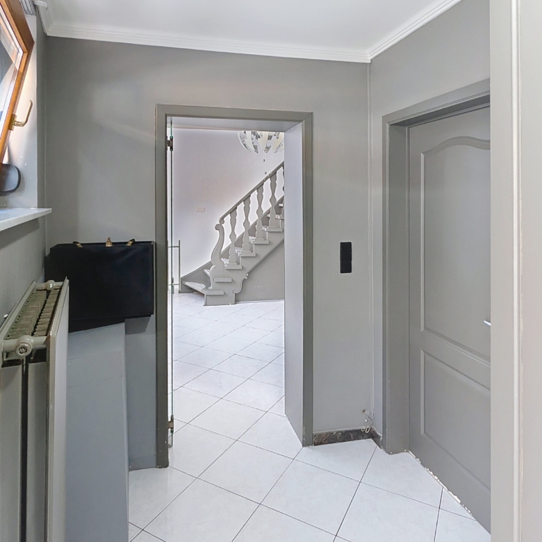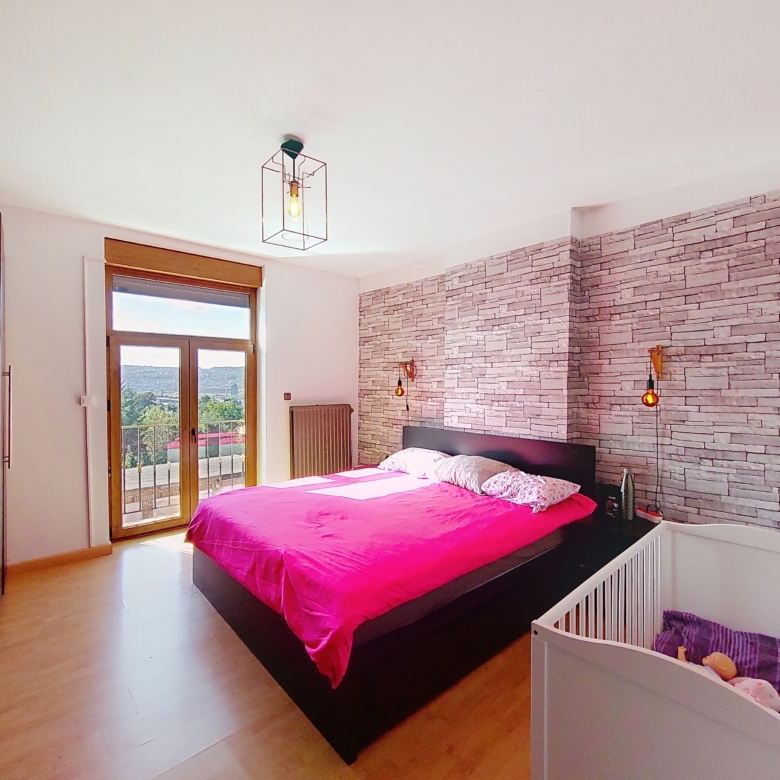 La maison propose 3 chambres (±10, 12 et 17 m²), dont deux communicantes. Une configuration qui permet de multiples aménagements : suite parentale, bureau, dressing, etc.